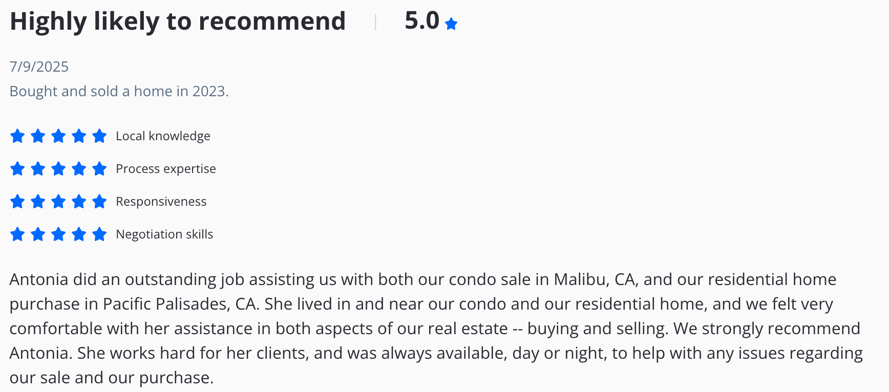 Recognized among the top 1% of agents by Real Trends, Antonia Mollica is a leading producer at The Agency, known for her deep market knowledge, strong negotiation skills, and warm, client-first approach. She specializes in luxury and beach communities from the South Bay to Malibu.